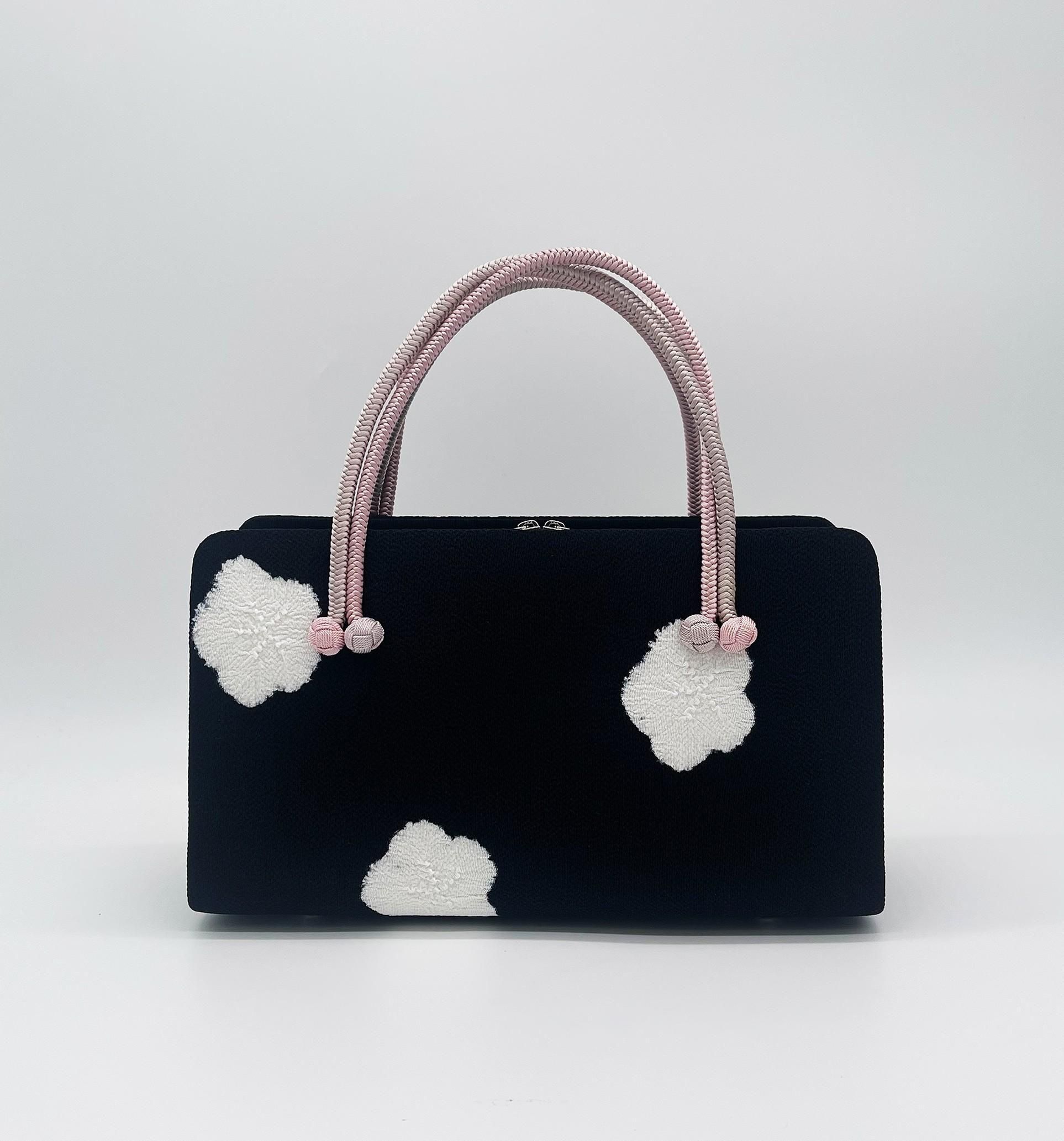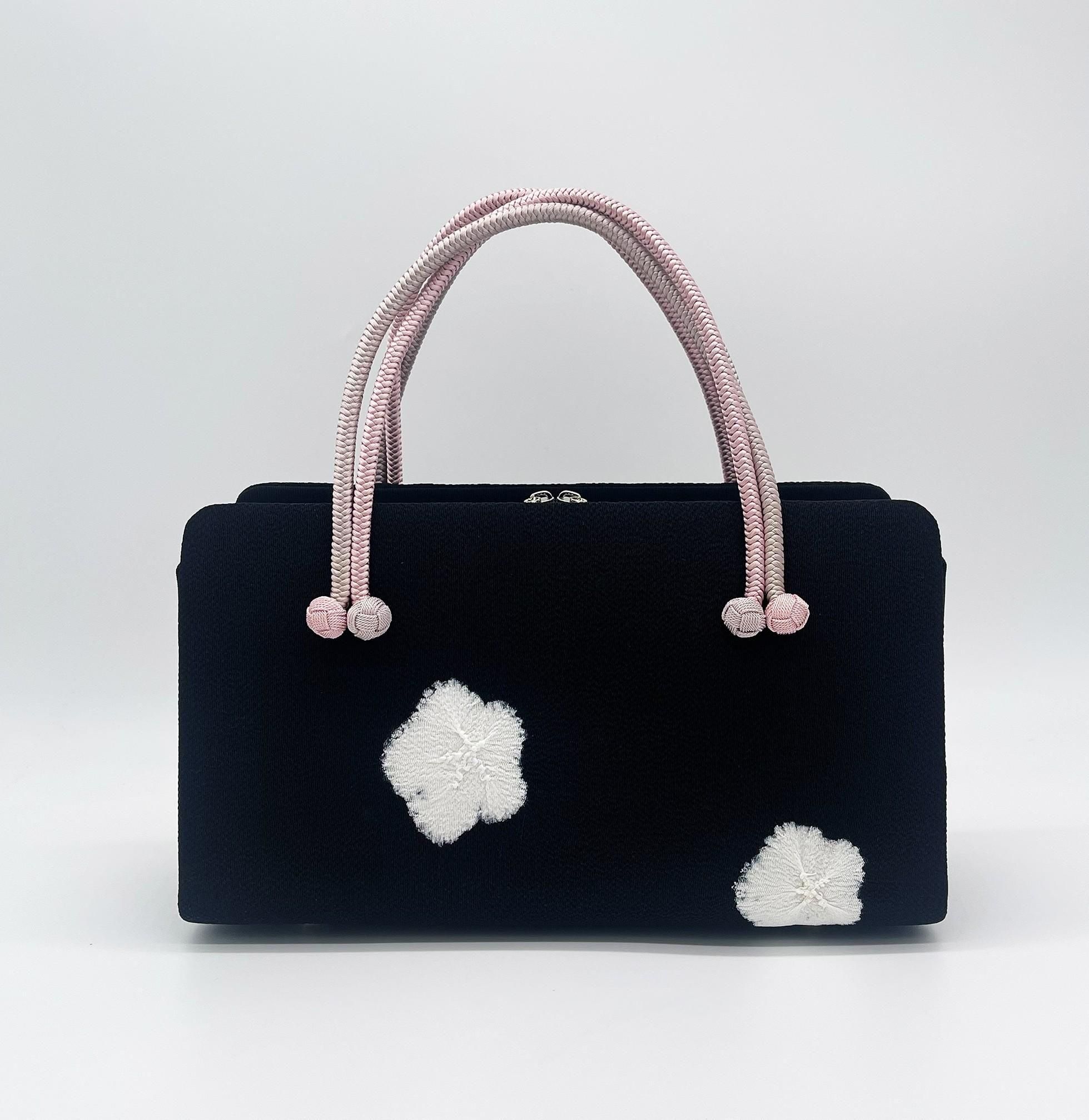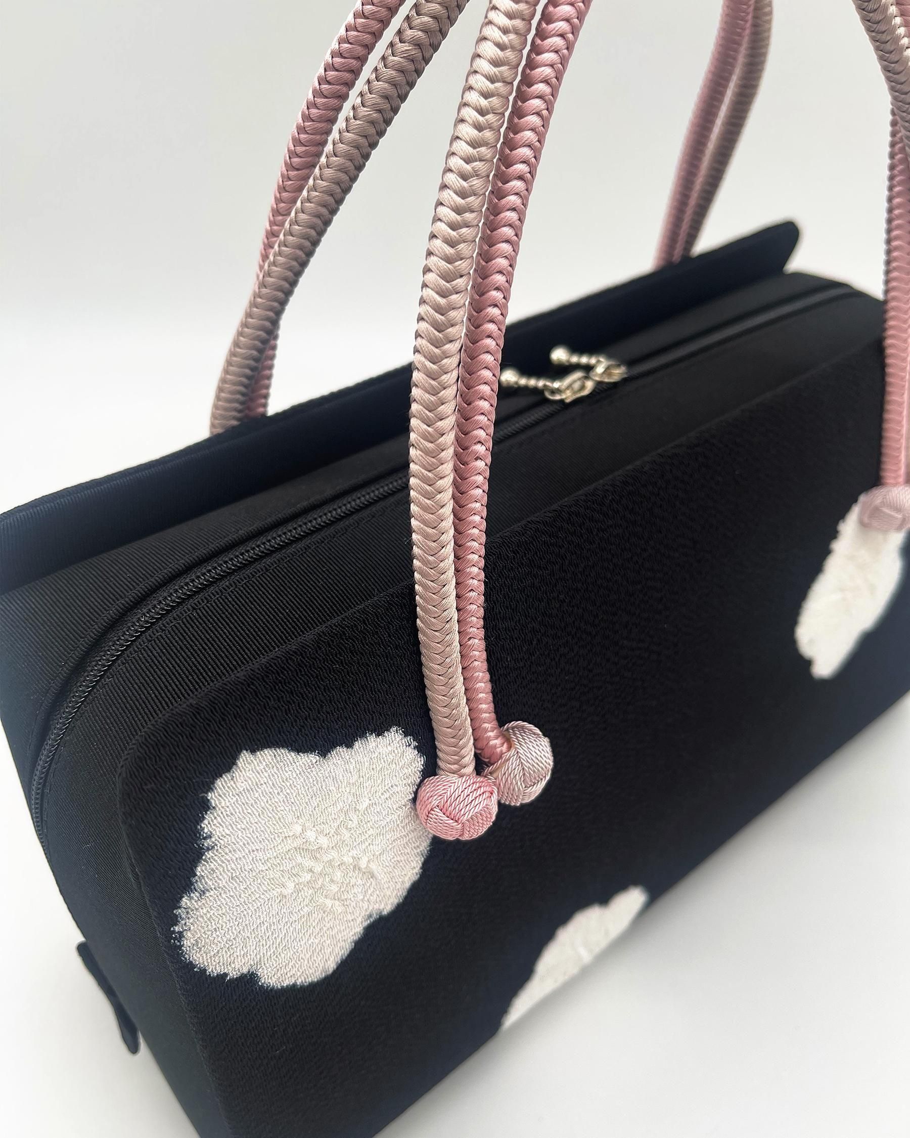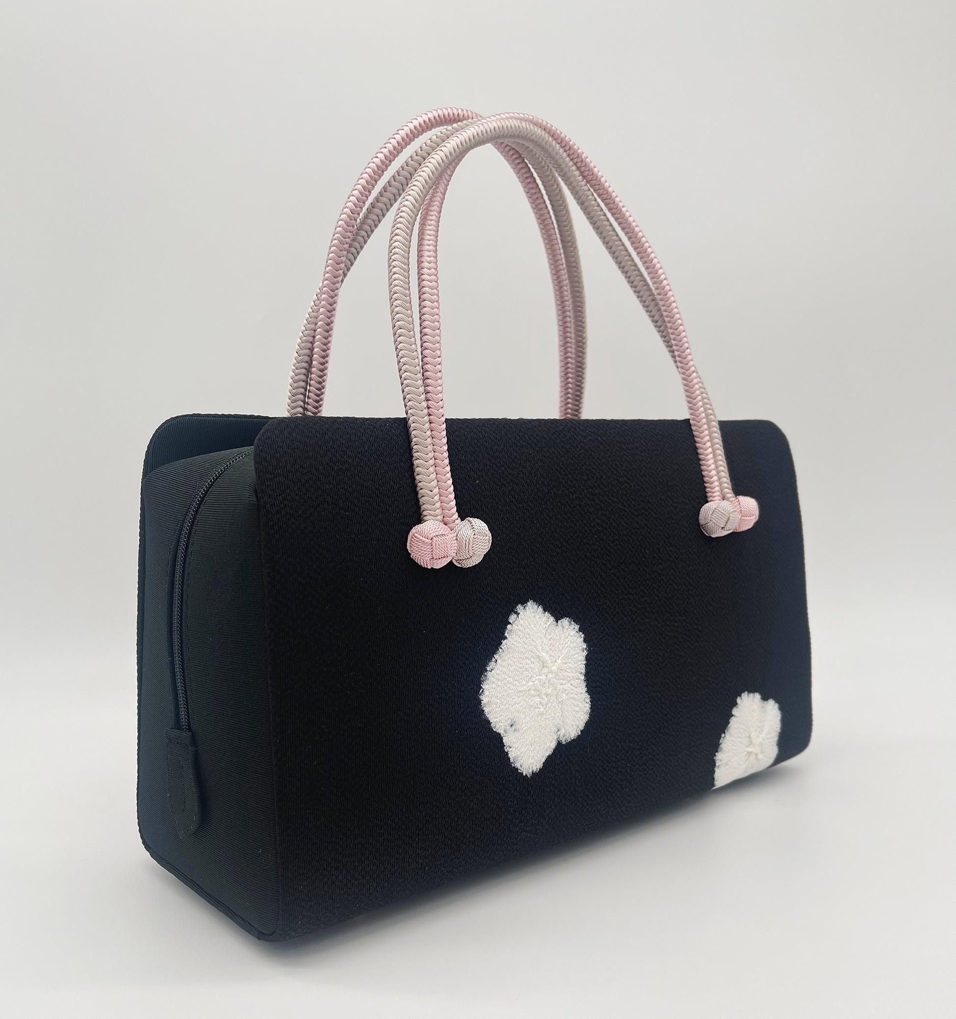 利休バッグ(絞り・黒白桜)