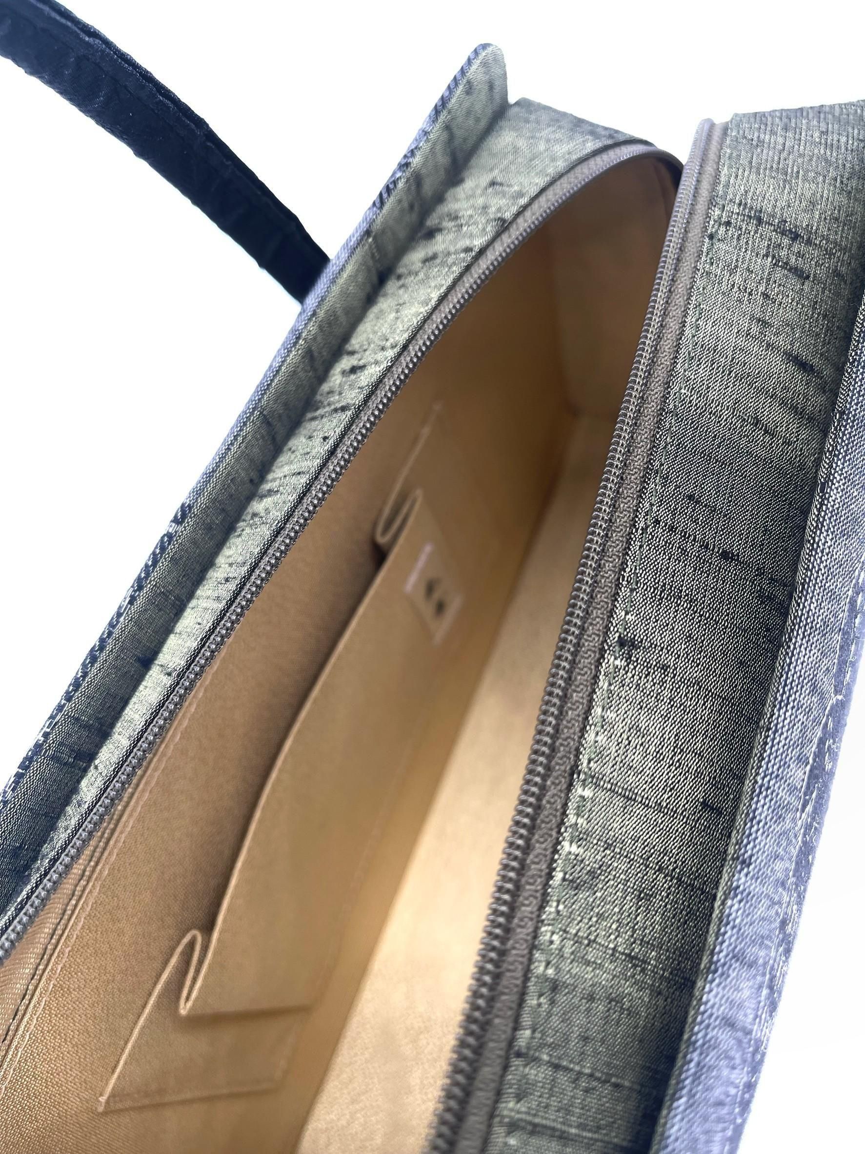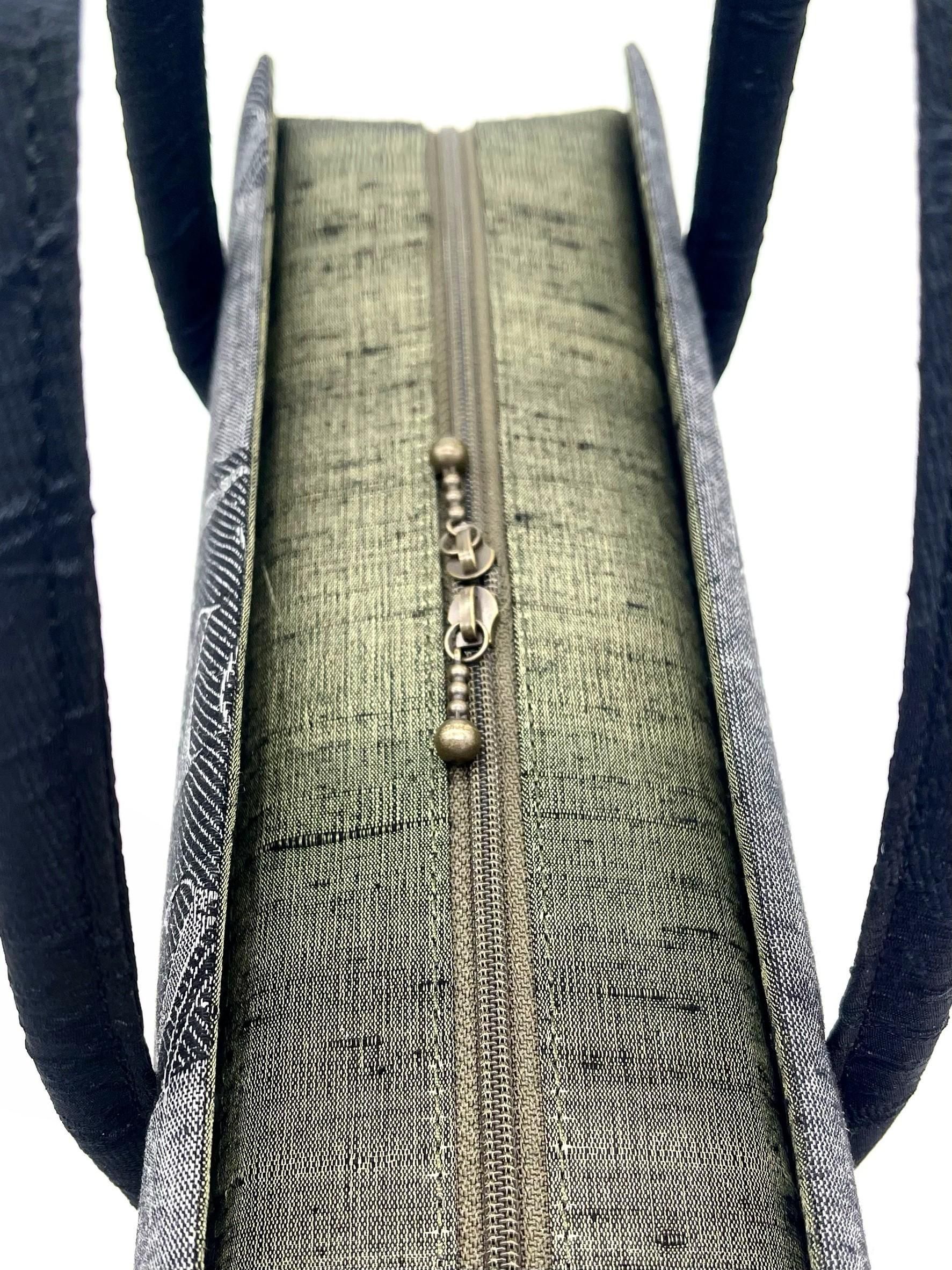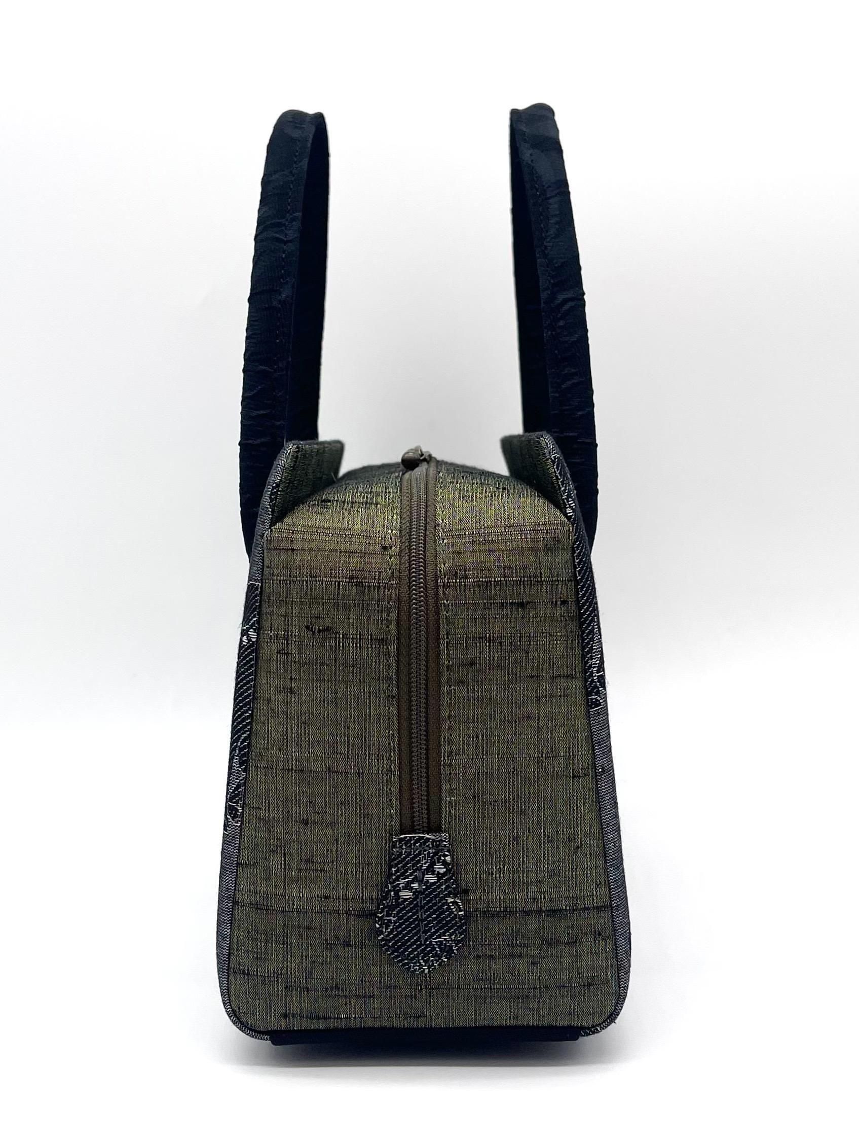 マチには節と上品な光沢をもつ麹塵色(きくじんいろ)のシルクシャンタンを使用。